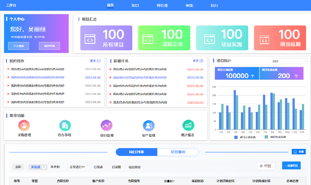 通过项目立项,项目各个节点贯穿整体项目进展,管理层完整管控和呈现散落在不同职能部门里的任务进度信息,数据实时透明。