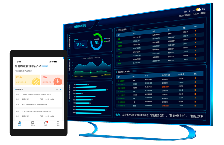 系统提供图形化报表和可视化大屏,生产任务、出货任务、作业进度、设备状态、异常情况等信息实时展现,清晰反映生产经营情况。