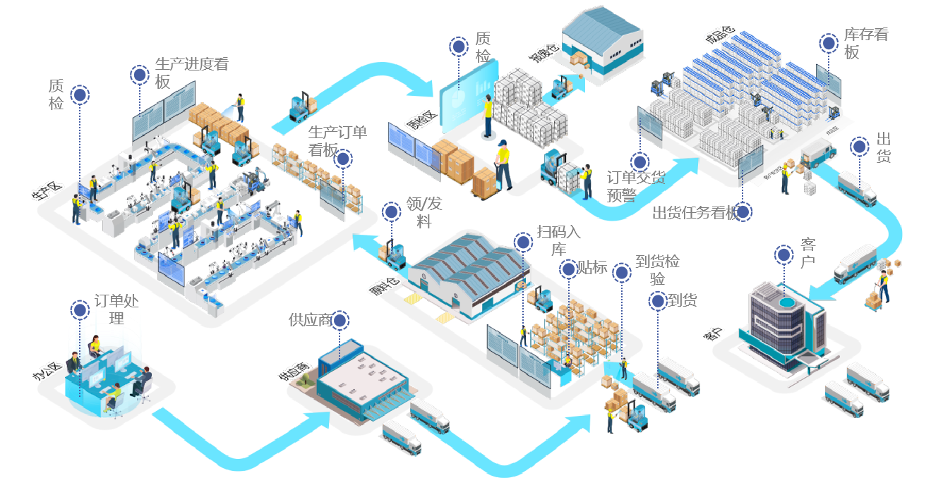 为制造企业增供上下游一体化管理,实现企业内部销售-采购-库存-生产高效协同;